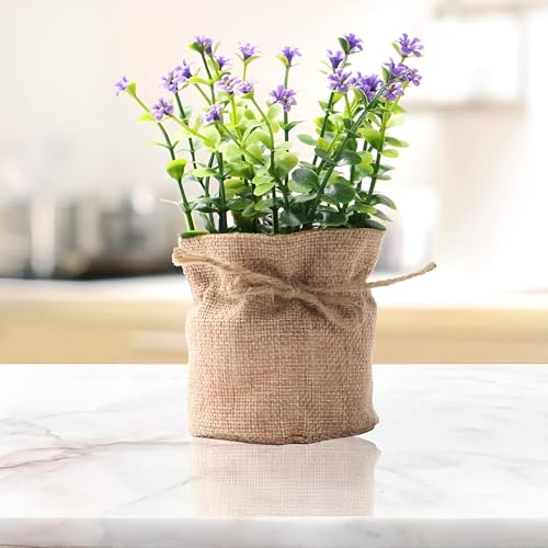 Generic - زينة منزلية بنمط ريفي، أزهار بلاستيك صغيرة ملونة مع لمسة من الخيش، مثالية لتزيين المنزل والمطبخ والحمام والمكتب، متعددة الألوان