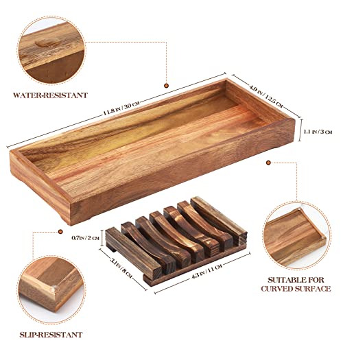 - حامل صينية صلب من الخشب: مصنوع من خشب الأكاسيا الطبيعي بنسبة 100%. خالٍ من التشققات. بدون رائحة. صندوق ديكور حمام الضيوف، منظم حمام فوق المرحاض، صواني حوض الاستحمام للأسطح، تنظيم المنزل والتخزين وترتيب المطبخ. جميع أشكال المنظمات التي تريدها لعائلتك. مزيج ممتاز من 2 قطعة. الخيار لك.