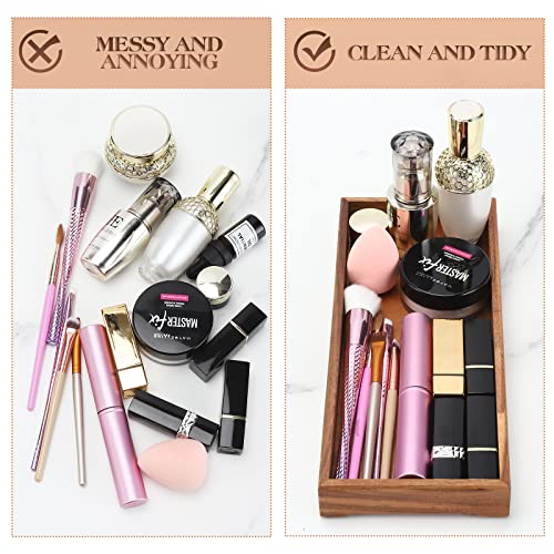 RAIKEDR - حامل صينية فانيتي خشبية صغيرة مستطيلة الشكل، منظم حمام ريفي، لمستحضرات التجميل والمناديل والمناشف والمجوهرات والخواتم وخزانة الملابس والعطور، صندوق ديكور (بني، 12 سم عرض 29 طول × 3 سم ارتفاع)