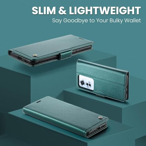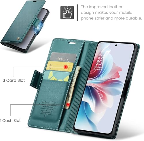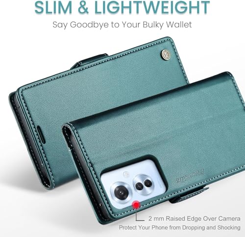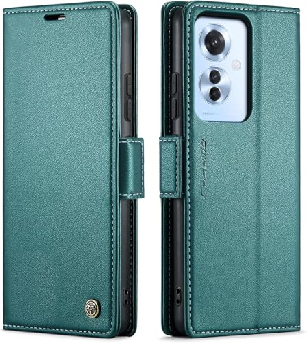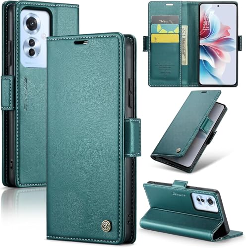FASCINATION - فاسينيشن جراب موبايل متوافق مع رينو 11F شبكة الجيل الخامس 5G متعدد الوظائف من جلد البولي يوريثين الممتاز فتحة للبطاقات وحامل ومحفظة لرينو 11F 5G اخضر منقلب