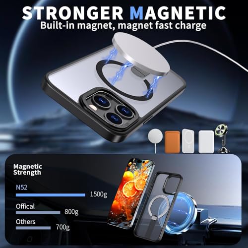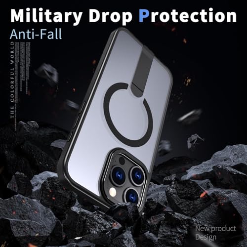 FASCINATION - جراب موبايل مغناطيسي مزود بمسند بـ 3 أوضاع متوافق مع آيفون 15 برو ماكس، جراب حماية من الدرجة العسكرية ومضاد للصدمات لموبايل آيفون 15 برو ماكس من فاسينيشن (أسود)