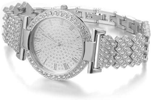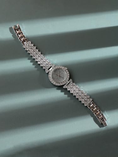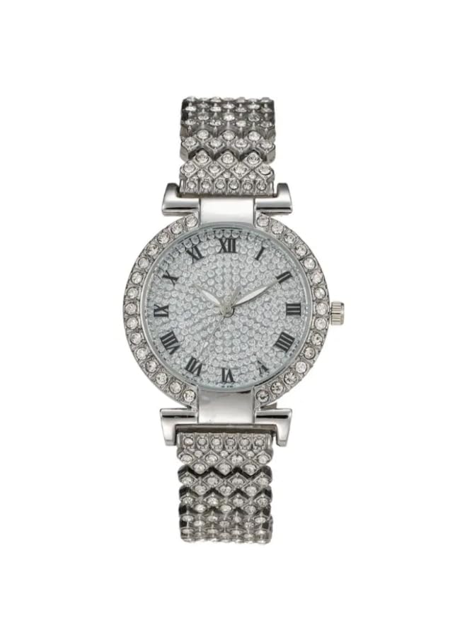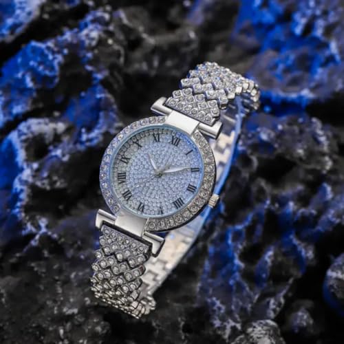 Generic - ساعة عصرية دائرية فاخرة بتصميم كلاسيكي مرصع بالماس للنساء (ألوان متعددة)