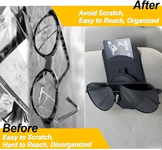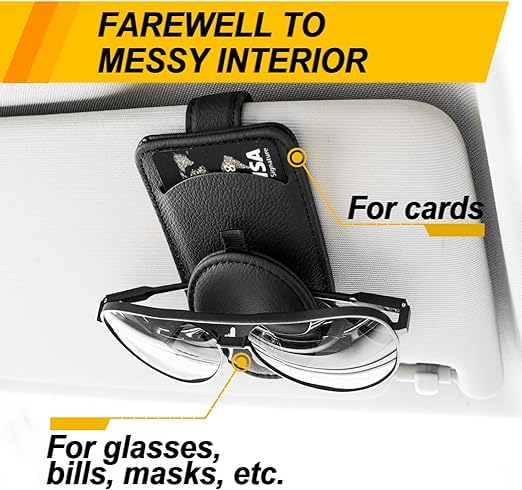 - وداعًا للفوضى داخل السيارة: يحفظ حامل نظارات الشمس هذا النظارات أو البطاقات أو الأقنعة أو الفواتير. خفيف الوزن وصغير، بتصميم انسيابي يمتزج جيدًا مع واقي الشمس.