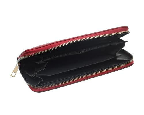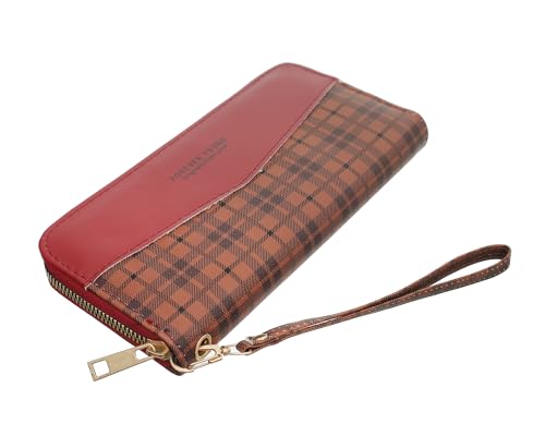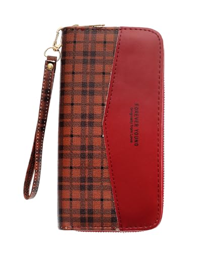 Generic - محفظة كبيرة مستطيلة ثنائية الطي من الجلد الصناعي تحتوي على جيب بسوستة وجيوب داخلية مقسمة للبطاقات العمل وتتضمن حزام يد بتصميم عملي للنساء - بني نبيذي