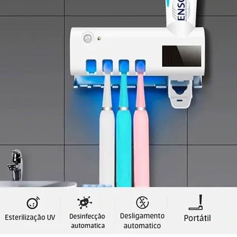 - موزع معجون اسنان وحامل فرشاة اسنان بمستشعر تلقائي بالاشعة فوق البنفسجية.