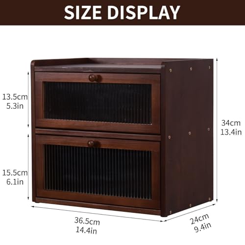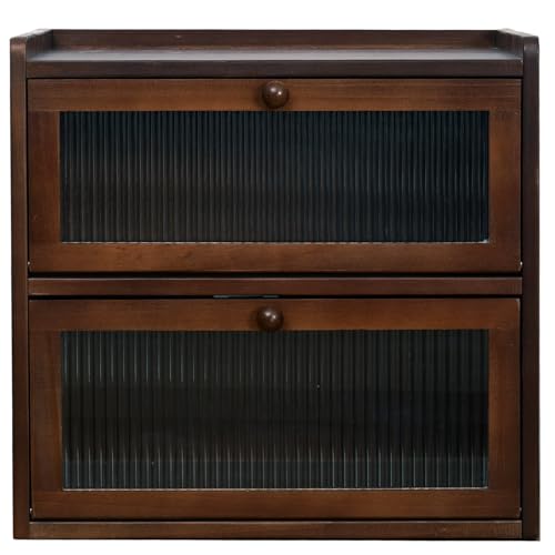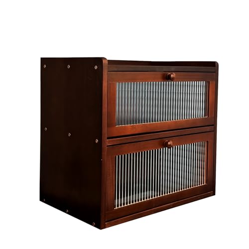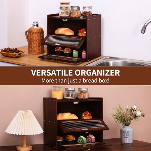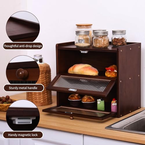 FDHUIJIA - اف دي اتش يو اي جيه اي ايه صندوق خبز كبير مزدوج الطبقات لطاولة المطبخ، حاوية تخزين خبز خشبية مع نافذة اكريليك (بني)