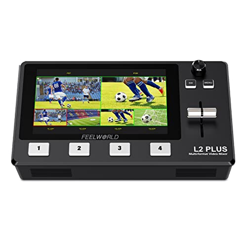 Feelworld - محول فيديو متعدد الكاميرات L2 بلس بشاشة لمس LCD 5.5 بوصة ووحدة تحكم PTZ وخاصية كروما كي مع 4 مداخل HDMI ومخرج USB 3.0 للإنتاج المباشر والبث الحي في الوقت الفعلي مع مروحة تبريد مدمجة من فيل وورلد