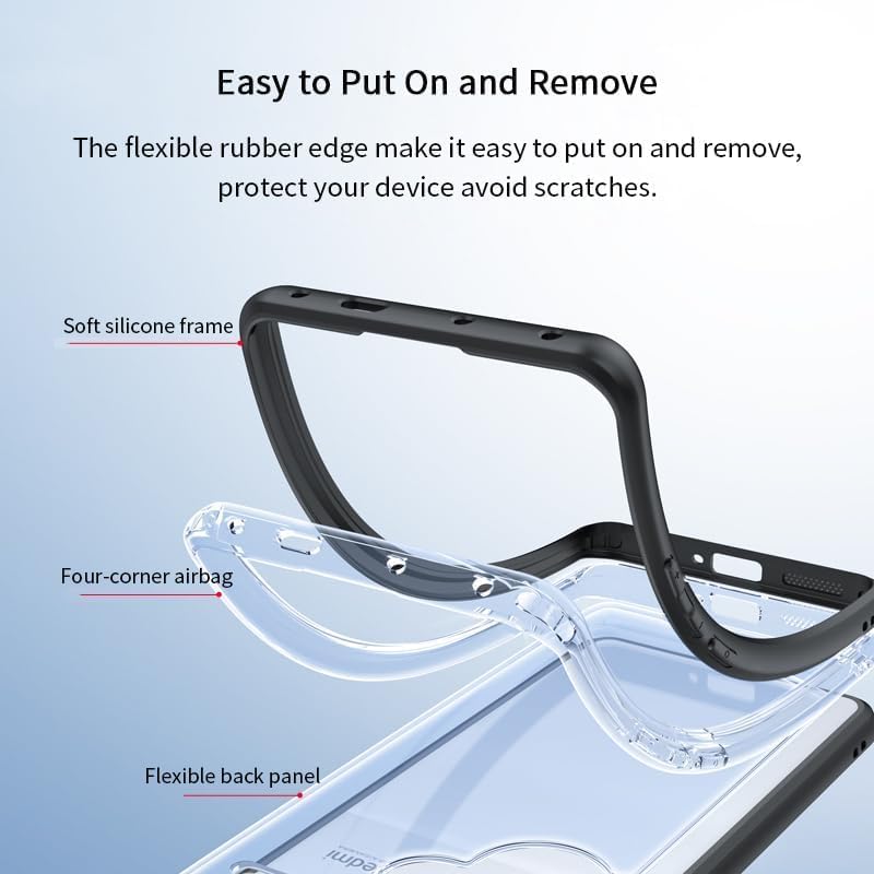 • جراب موبايل ريدمي نوت 13 برو بلس، تصميم نحيف للغاية لا يضيف أي حجم إلى جهازك دون التضحية بالحماية؛ تصميم من قطعة واحدة ينزلق بسهولة داخل وخارج الجيوب.