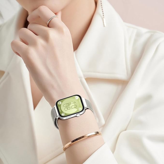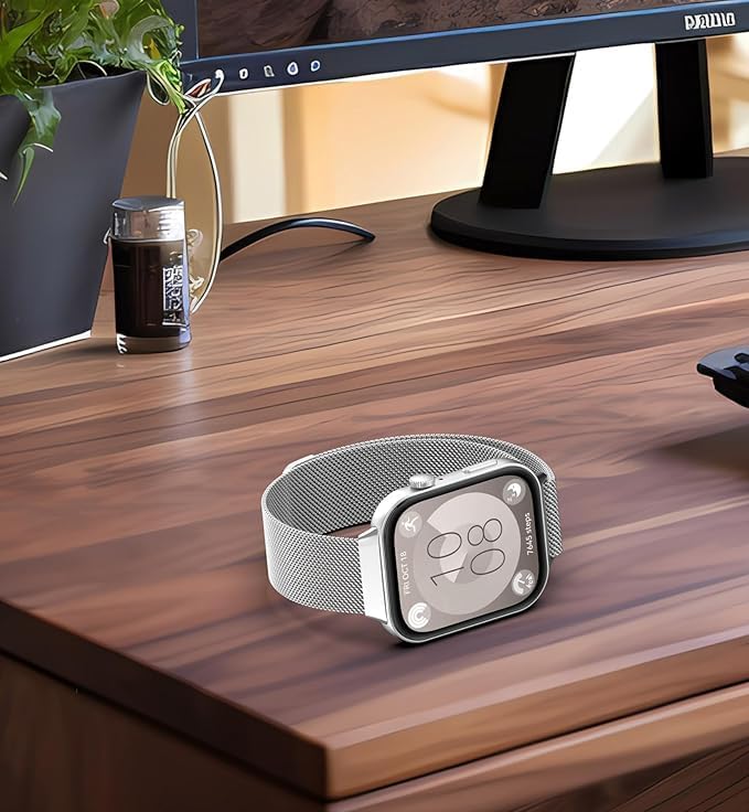 فكرة - سوار شبكة من فيكرا متوافق مع هواوي ساعة فت 3، مصنوع من الستانلس ستيل بلون فضي للجنسين مقاس 20 ملم