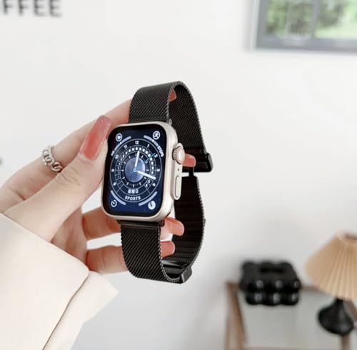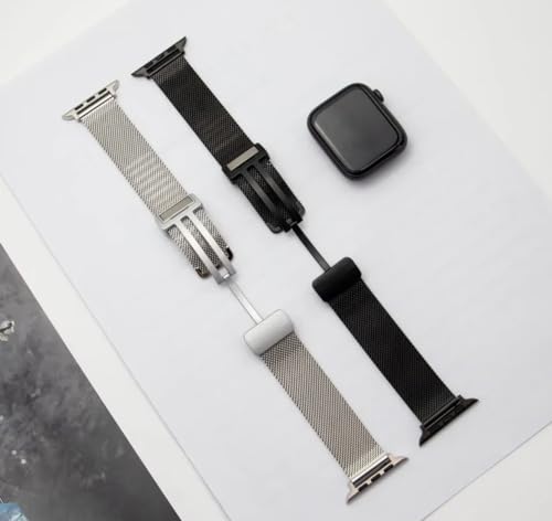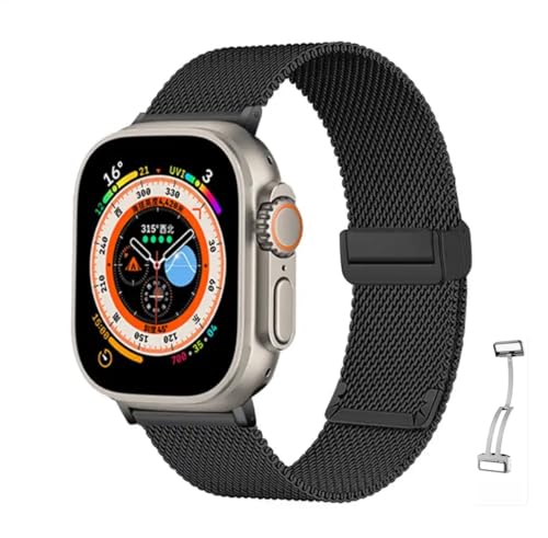 فكرة - سوار شبكة من فيكرا متوافق مع ساعة آبل ووتش ألترا 2 و سلسلة 9 و 8 و 7 و 6 و SE مصنوع من الستانلس ستيل مغناطيسي للجنسين مقاس 49 و 44 و 45 ملم