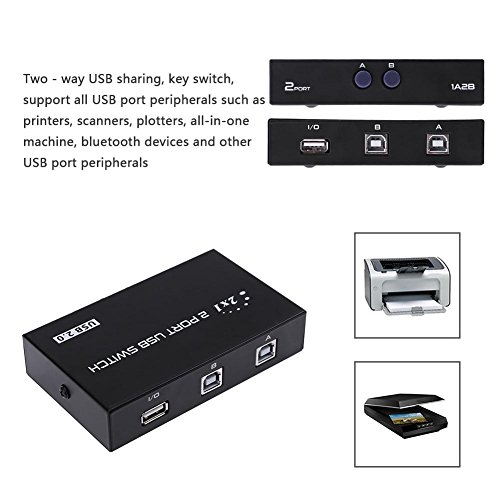 FENTICO - مفتاح مشاركة الطابعة بمنفذين USB 2.0 من فينتيكو، مفتاح اختيار لمشاركة الكمبيوتر وصندوق مفاتيح الكمبيوتر والماسح الضوئي والطابعات وجهاز العرض والكاميرا والكيبورد