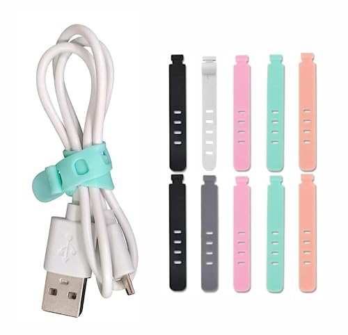 Feora9X - منظم أسلاك قابل للتعديل من فيورا، رباط كابلات وأشرطة وأسلاك قابلة لإعادة الاستخدام للمنزل والمكتب بمنفذ USB، منظم أكسسوارات إلكترونيات، 10 قطع