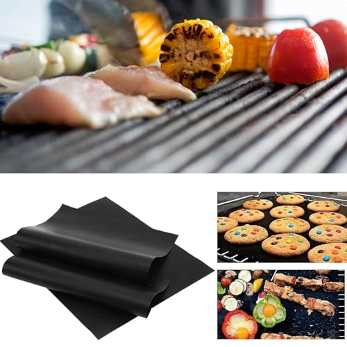 Generic - بساط شواء من الالياف - غير لاصق ومقاوم للحرارة وقابل لاعادة الاستخدام للفرن والشواء، مقاوم للماء والزيت، 400×330 ملم، سهل التنظيف ومثالي للشواء والخبز (اسود من قطعتين)