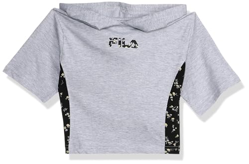 Fila - سويت شيرت بغطاء للرأس للأطفال من الجنسين مزين بشعار العلامة التجارية وألوان متباينة وأكمام قصيرة من فيلا