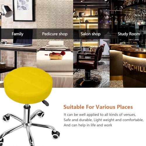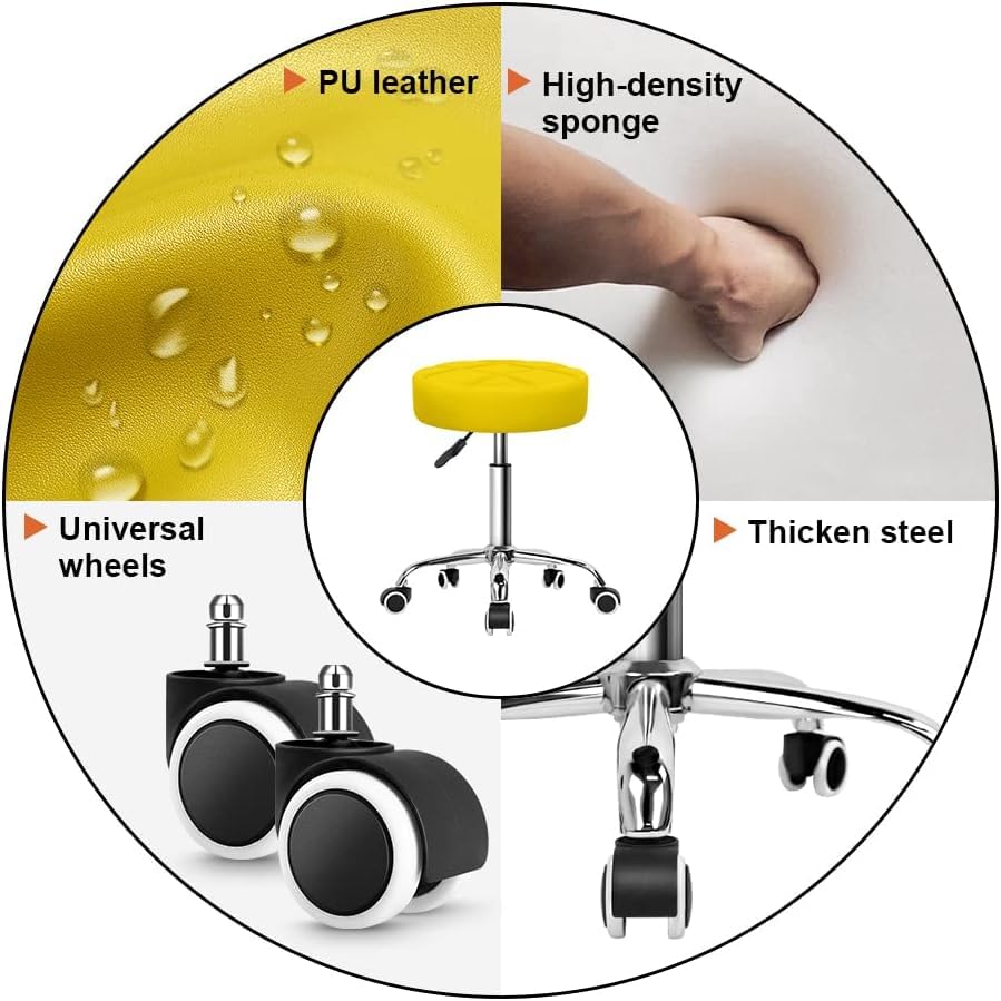 Finch Fox - فينش فوكس® كرسي دوار دوار من جلد البولي يوريثين بارتفاع قابل للتعديل مناسب للعمل والصالونات الطبية والمنتجعات الصحية والمكتب بلون اصفر