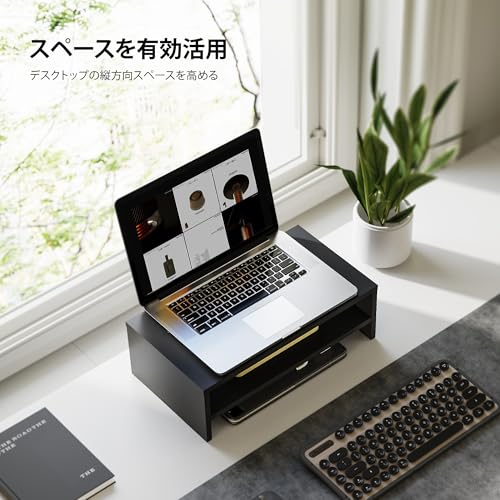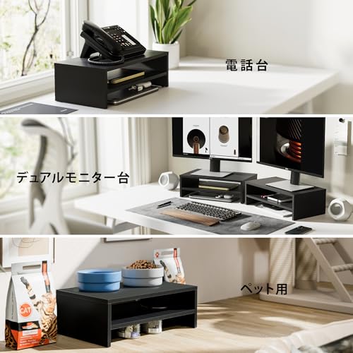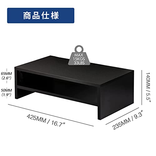 FITUEYES - حامل شاشة وكمبيوتر محمول، سطح طاولة خشبية بطابقين، رف مكتب ورف تخزين وتنظيم من فيتوييس، بعرض 42.5 سم، أسود .DT204201WB