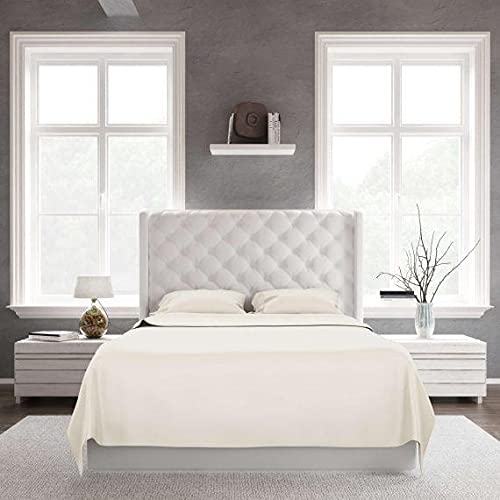بد اند هوم BedNHome - طقم ملاية فلات, 270x180سم, ايفوري، من بد اند هوم، نسيج قطن، اوف وايت، سادة، مفرد