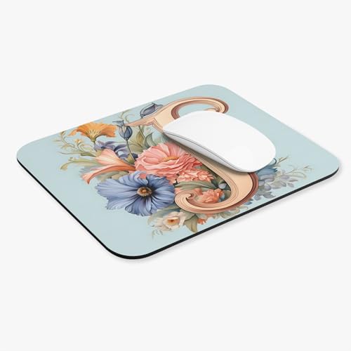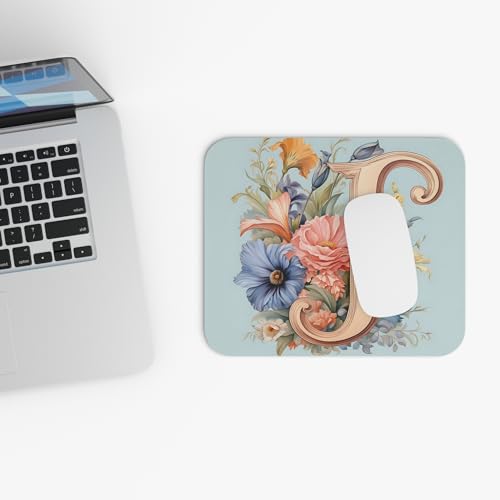 Generic - لوحة ماوس بتصميم مونوجرام حرف J مزينة بالزهور ناعمة وغير قابلة للانزلاق ومتينة، اكسسوار مكتب مخصص للألعاب والعمل المكتبي - طراز 310