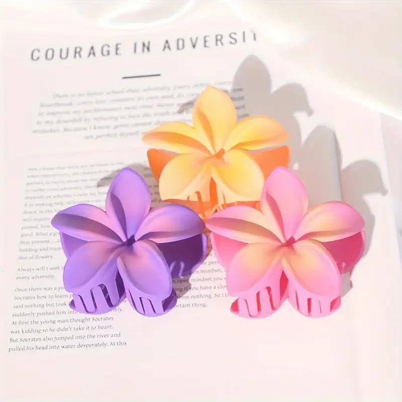 Generic - مشابك شعر على شكل زهور، ٣ قطع، ألوان بنفسجي وزهري وبرتقالي