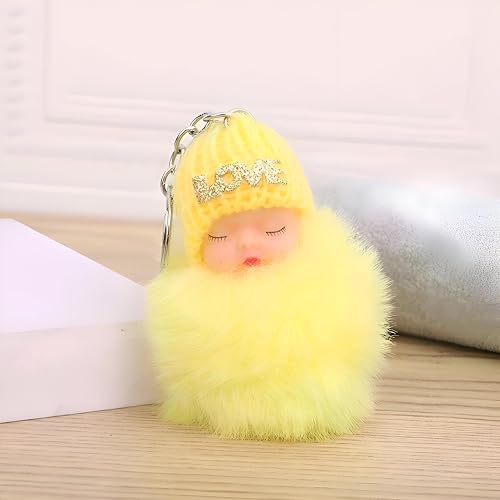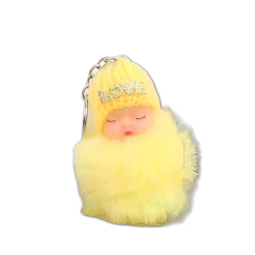 Generic - سلسلة مفاتيح فلافي بيبي، عروسة نائمة فاتنة مثبتة على كرة من الفرو الصناعي بطاقية صوف منقوشة بكلمات رقيقة، لتزيين الشنط أو كدلاية متميزة للأطفال وهواة الجمع، لون وردي