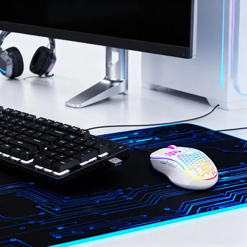 - مزودة بإضاءة ار جي بي: يتميز إضاءة خلفية ليد نابضة بالحياة تشع من خلال الهيكل بشكل قرص العسل لتشكل جوًا رائعًا للألعاب.