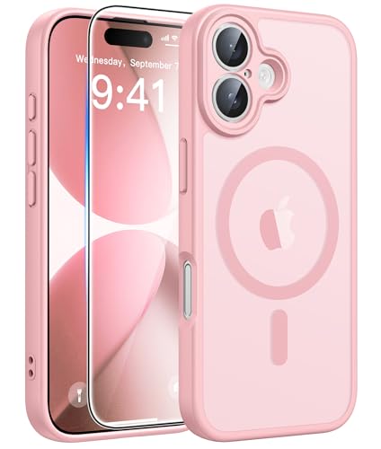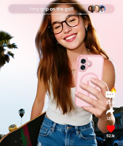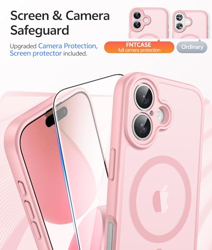 FNTCASE - جراب حماية لموبايل آيفون من اف ان تي كيس جراب حماية مغناطيسي متين شفاف مطفي مقاوم للصدمات والسقوط من الدرجة العسكرية، مع حماية كاملة للكاميرا، وردي