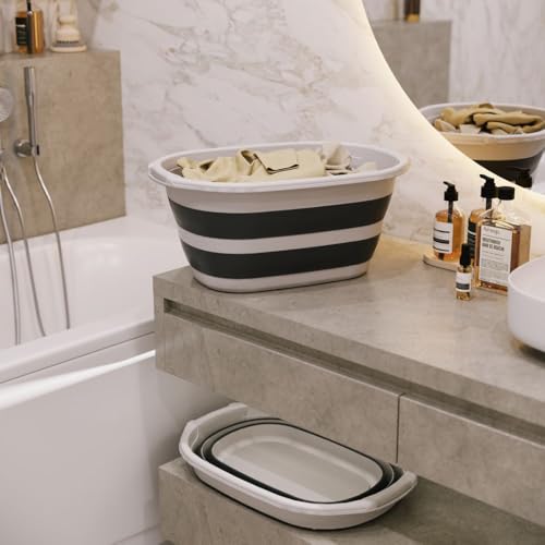 Generic - سبت غسيل بلاستيكي قابل للطي، سبت غسيل قابل للطي من البلاستيك والسيليكون، مناسب للسفر والرحلات، 25 ل، رمادي