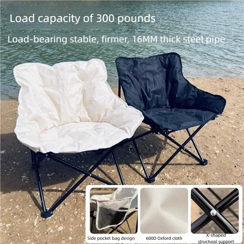 Generic - كرسي تخييم مبطن قابل للطي مع حقيبة حمل وجيب جانبي - كرسي رحلات مريح للحدائق، الصيد، والنزهات الخارجية - تصميم متين وخفيف الوزن (أبيض)