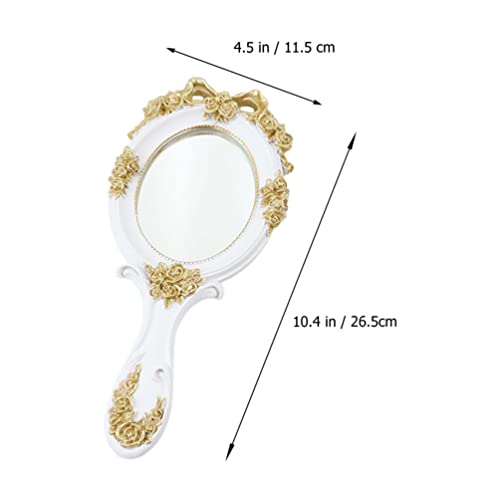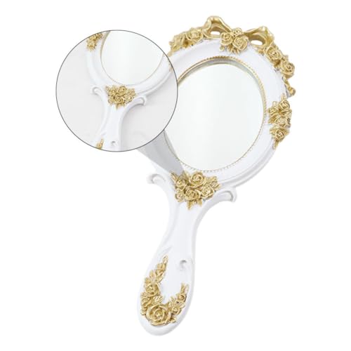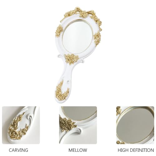 FOMIYES - فوميز. مراة مكياج على شكل قلب مع مقبض، مراة محمولة باليد بتصميم رترو لمستحضرات التجميل للنساء والفتيات، لون ابيض