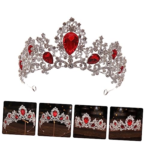 FOMIYES - تاج الأميرة الأنيق بتصميم معدني لامع بطابع الملكة مزين بفصوص كريستالية حمراء للعروس وحفلات الزفاف والمهرجانات لتزيين حفلات الزفاف وتاج الأميرة والملكة والحفلات من فوميز - قطعتين