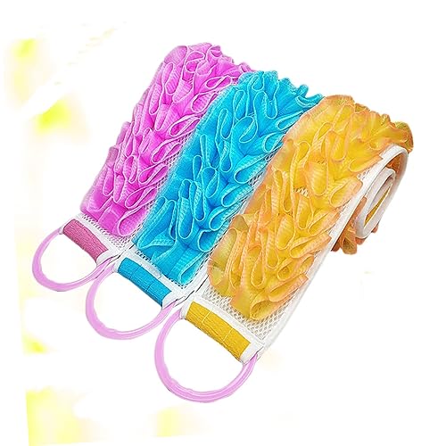 FOMIYES - فوميز. 3 قطع من فرشاة تنظيف حوض الاستحمام للجسم وحزام فرك طويل للاستحمام ومنشفة حمام سميكة مزدوجة الجوانب وشريط خلفي واسفنجة استحمام