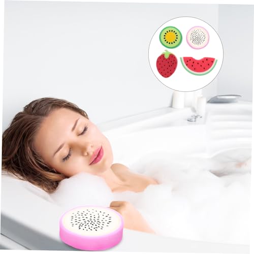 - إسفنجات استحمام للبالغين - عبوة من 4 قطع على شكل فاكهة بحجم صغير وخفيف الوزن، سهلة الاستخدام ومريحة للحمل.