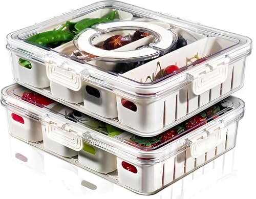 Generic - حاوية طعام - صينية تقديم الوجبات الخفيفة متعددة الأقسام مع غطاء ومقبض، مثالية للحفاظ على الفواكه والشيبس والخضروات المفضلة لديك طازجة (قطعتان)