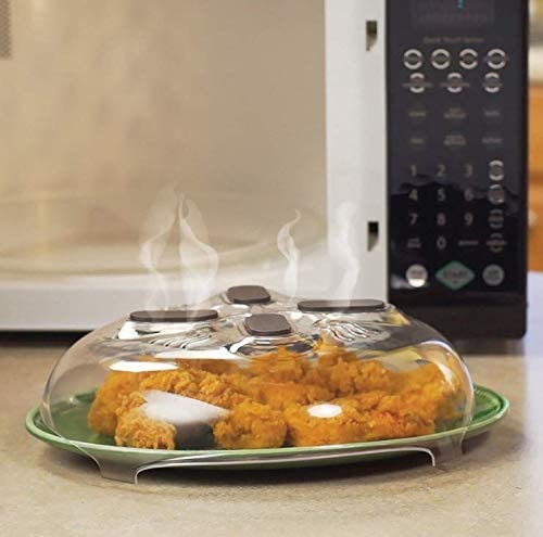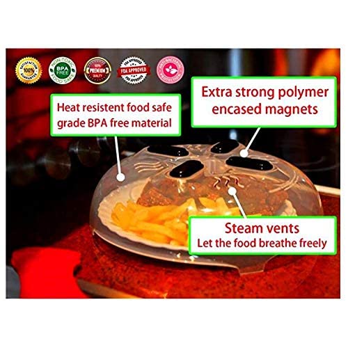 Generic - غطاء طبق ميكروويف مصنوع من مادة البولي بروبلين الآمنة غذائيا، خال من البيسفينول أ، بوظيفة مغناطيس، آمن ومريح مع فتحة للبخار لمنع تناثر الطعام (29 سم، أسود)