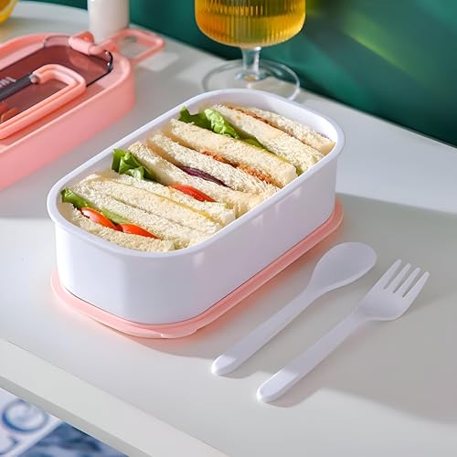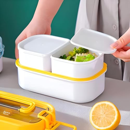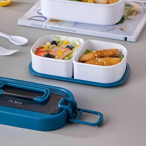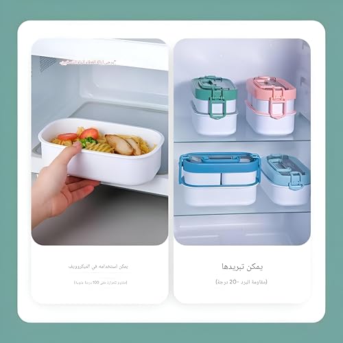 Generic - حاوية تخزين الطعام - صندوق غداء بلاستيكي متعدد الطبقات مع غطاء مقاوم للانسكاب، يتضمن ادوات ومشابك قفل، مثالي لوجبات الاطفال المدرسية، متوفر بالوان مختلفة