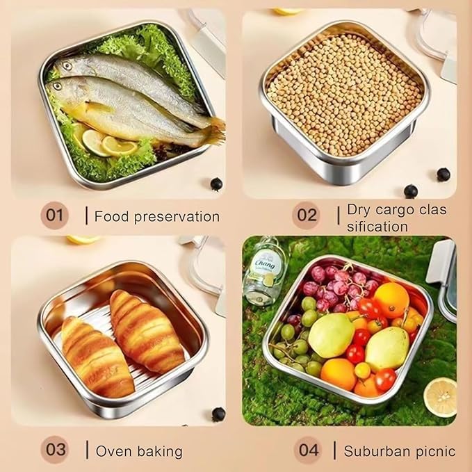 - سهلة التنظيف وإعادة الاستخدام - السطح الأملس المصنوع من الفولاذ المقاوم للصدأ يقاوم البقع والروائح الكريهة، مما يجعل التنظيف سريعًا وخاليًا من المتاعب. يمكن إعادة استخدامها يوميًا لتوفير المال وتقليل النفايات البلاستيك.