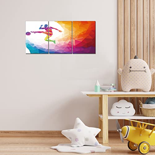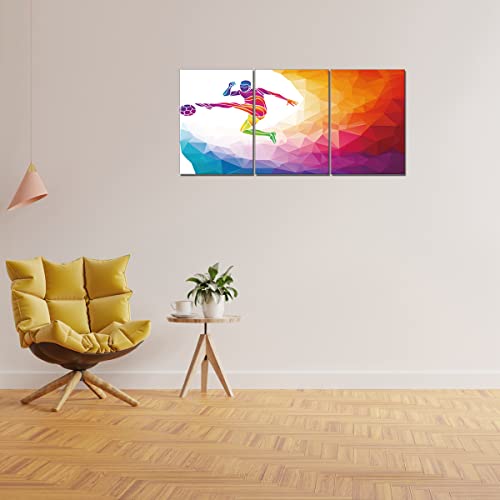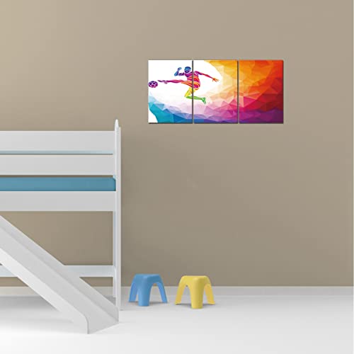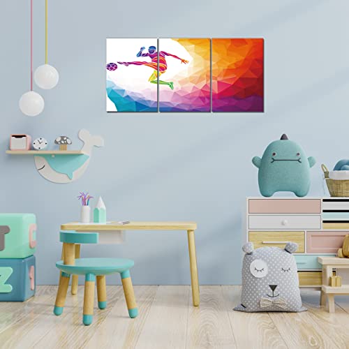 TAOMI - لوحة فنية ملونة بنمط فسيفساء كرة القدم ثلاثية الطبقات لغرفة الاطفال وغرفة مطبوعة قماشية نوم الاولاد وديكور الحائط باطار ممتد 12 × 16 انش 3 من طاومي