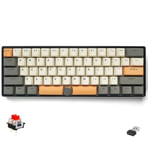 Generic - كيبورد ألعاب سكاي لونج GK61 برو بون سلك، بلوتوث وبسلك بثلاثة أوضاع ار جي بي- مفتاح جاتيرون أحمر - حافظة سوداء من مادة ABS (رمادي تيتانيوم صناعي)