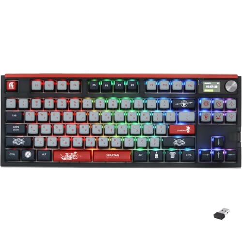 Generic - لوحة مفاتيح ميكانيكال GK87 برو لايت للألعاب بإضاءة ار جي بي وتصميم اسبارطة وثلاثة أوضاع لا سلكي وبلوتوث وسلكي، مفتاح جاتيرون ريد قابل للتبديل السريع من سكاي لونج
