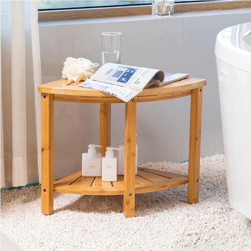 Forevich - كرسي استحمام من الخيزران برف من فوريفيش، كرسي دش زاوية، طبيعي