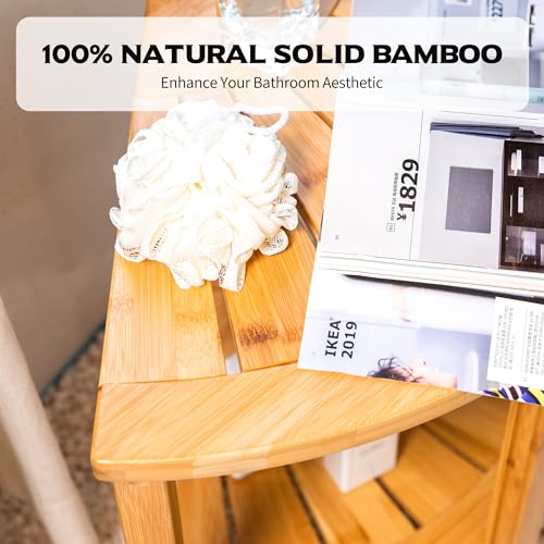 - 【مواد الخيزران الطبيعية】: مقعد الزاوية مصنوع من مادة الخيزران بنسبة 100% وهي متينة وصديقة للبيئة وصحية لجسمك. مقاومة للماء بشكل طبيعي تسمح باستخدام الكرسي أثناء الاستحمام.
