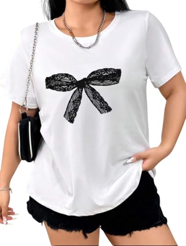 Generic - تيشرت أنيق اوفر سايز برسمه فيونكه أنيقه اندر شيرت للنساء انيق لاطلاله جذابه مفعمه بالتالق والجمال من FOUR H كود 4005