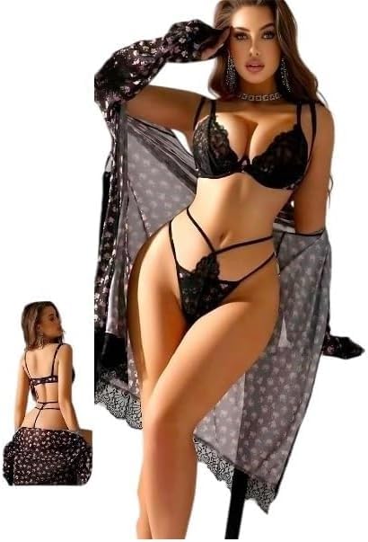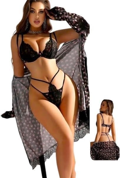 Generic - لانجيري سكسى لانجرى ساخن مع روب مزين بورود ليجعل اطلالتك ساحره بجاذبيتك وجمالك بيبى دول قميص نوم حريمى من فور اتش كود 655