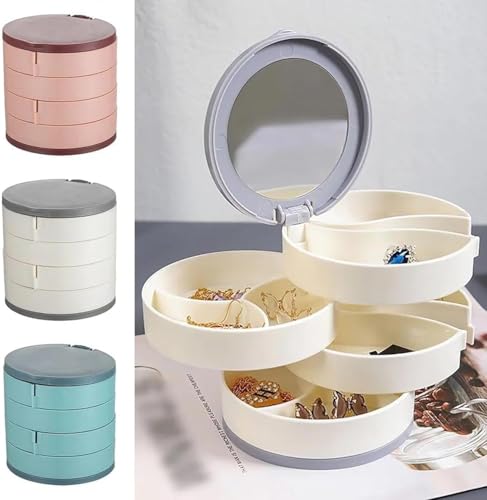Generic - منظم مجوهرات واكسسوارات مكون من أربع طبقات مع مراية، صندوق تخزين عمودي ذكي موفر للمساحة بتصميم أنيق وقوي ومتين للمنزل والمطبخ وغرفة النوم