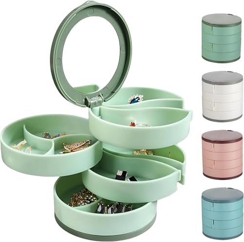 Generic - منظم اكسسوارات مجوهرات متعدد الادوار من 4 طبقات مع مراة مدمجة للتخزين المنظم والعملي، منظم اكريليك شفاف