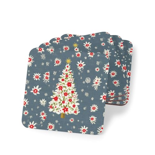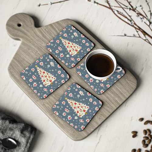 Generic - طقم قواعد اكواب بتصميم شجرة الكريسماس مكون من 4 قطع - تصميم احتفالي للعطلات مع قواعد اكواب خشبية مزخرفة ملونة - قواعد اكواب خشبية انيقة ومقاومة للحرارة ومقاومة للماء، قاعدة اكواب - 241