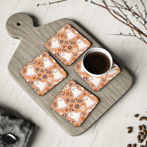 Generic - قواعد اكواب مطاطية بتصميم شبح لطيف بتصميم زهور - قواعد اكواب مطاطية انيقة ومقاومة للحرارة ومقاومة للماء، قاعدة اكواب - 4 قطع - 192