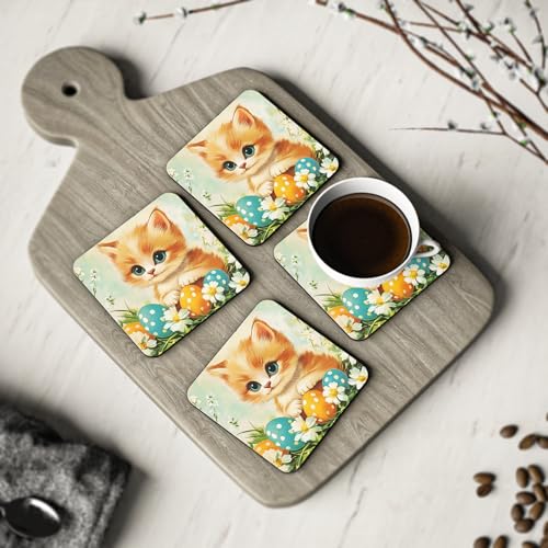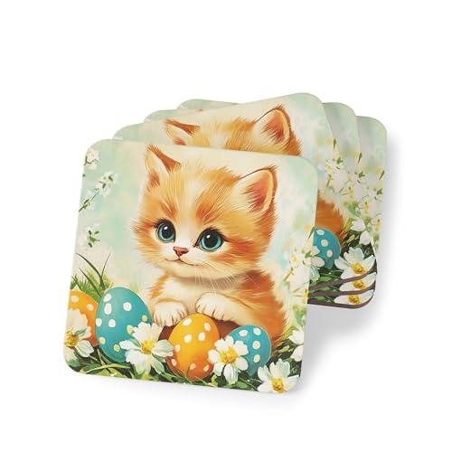 Generic - طقم قواعد اكواب بتصميم كلاسيكي للقطط الصغيرة وبيض عيد الفصح من 4 قطع - تصميم كلاسيكي للقطط - قواعد اكواب مطاطية انيقة ومقاومة للحرارة ومقاومة للماء