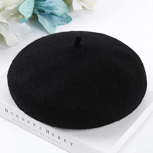 Longsing - بيريه من لونجسينج، باللون الأسود، مصنوع من الصوف للنساء، بتصميم فرنسي كلاسيكي