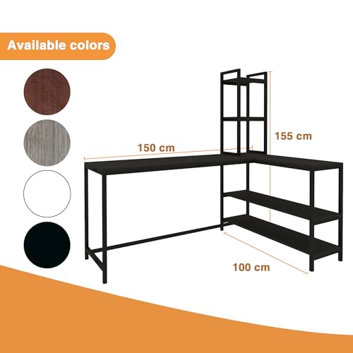 Friends Metaly - طاولة دراسة شكل حرف L للطلاب والبالغين، طاولة كمبيوتر للمنزل والمكتب والألعاب من الخشب من فريندز ميتالي (عمق 1 متر× عرض 1.50 متر× ارتفاع 1.55 متر) (لون بني)
